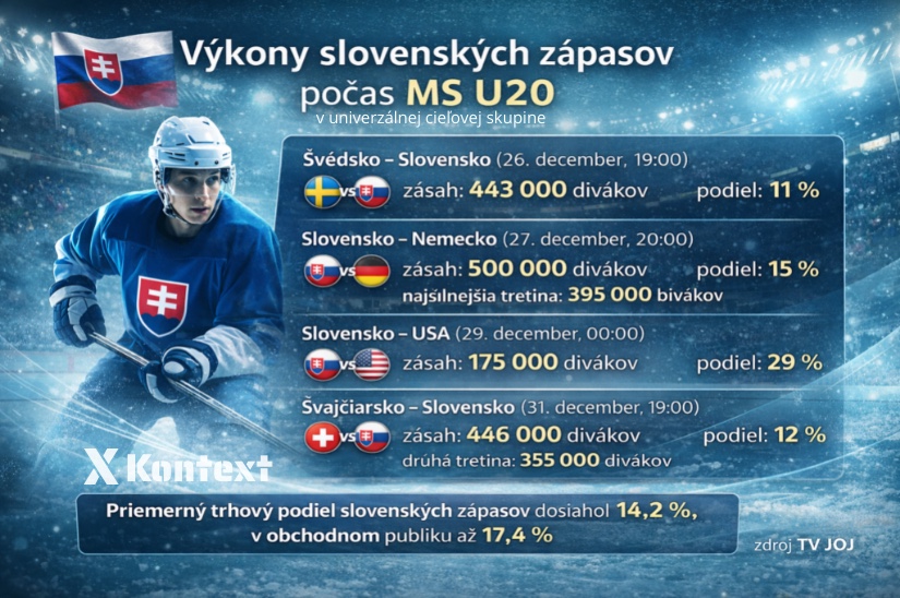 Hoci sviatočné obrazovky tradične ovládajú kultovky, medzi Popolušku, Pelíšky, Sám doma a silvestrovské šou sa prebojoval aj hokej. Aj uplynulý rok dokázal, že živý obsah má počas Vianoc pevné miesto – slovenské zápasy na skončených MS U20 zasiahli státisíce divákov. Ustáli tak konkurenciu ikonických titulov a stali sa jedným z najvýraznejších televíznych projektov sviatkov.